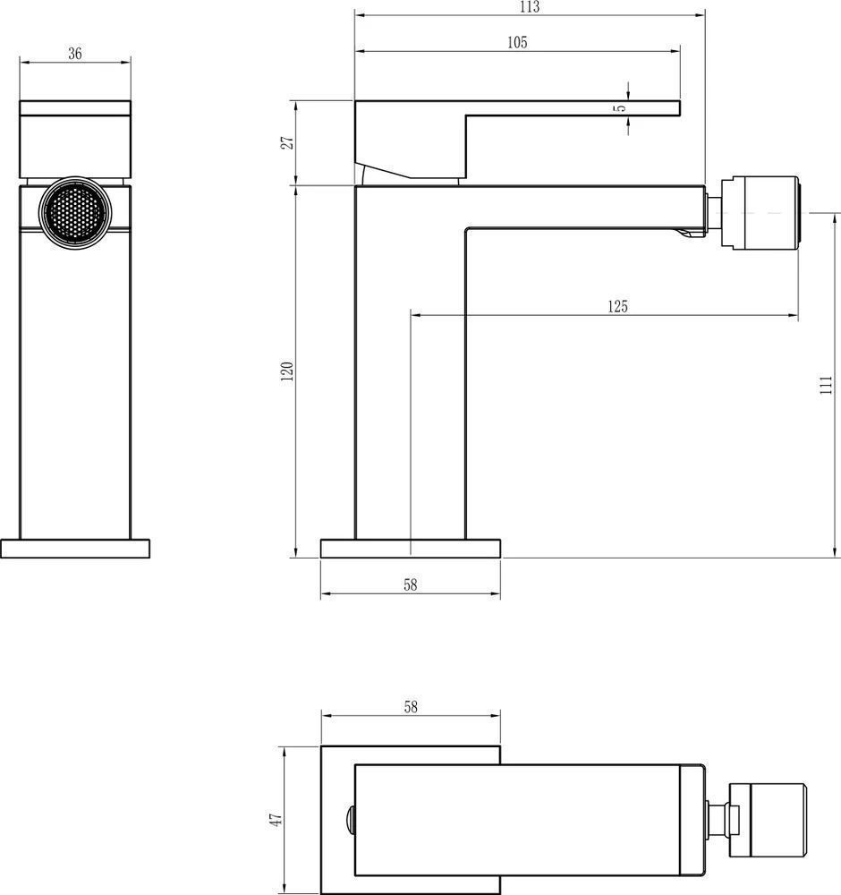 Смеситель для биде Boheme Qubic, материал латунь, цвет nickel brush