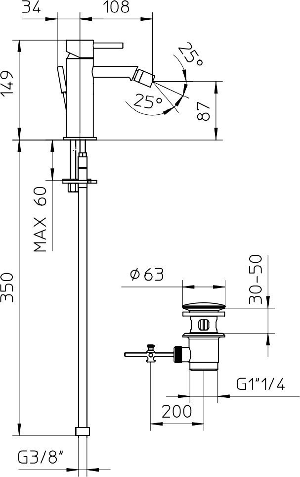 Смеситель для биде Bossini Oki Z005401.030 с донным клапаном, материал - латунь, цвет - хром.