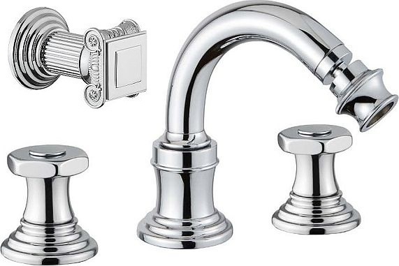 Смеситель для биде Cezares APHRODITE-BBS2-01-O с донным клапаном, на 3 отверстия, ручки - металл, материал - латунь, цвет - хром.