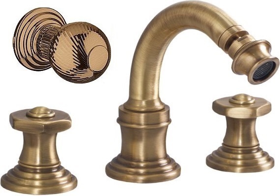 Смеситель для биде Cezares APHRODITE-BBS2-02-M с донным клапаном, на 3 отверстия, ручки - металл, материал - латунь, цвет - бронза.