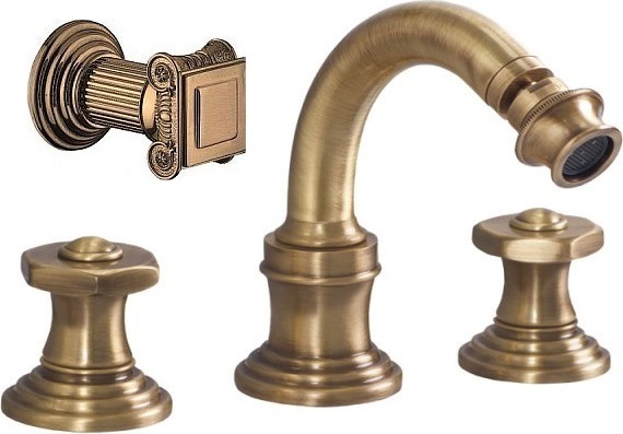 Смеситель для биде Cezares APHRODITE-BBS2-02-O с донным клапаном, на 3 отверстия, ручки - металл, материал - латунь, цвет - бронза.