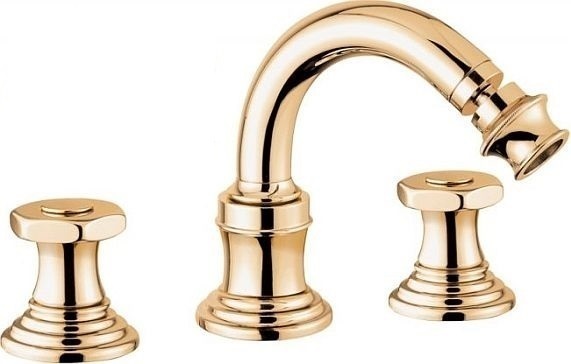 Смеситель для биде Cezares APHRODITE-BBS2-03/24-S1 с донным клапаном, на 3 отверстия, ручки - металл, материал - латунь, цвет - золото 24 карат.