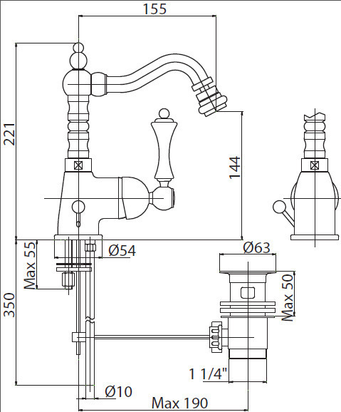 Смеситель для биде Cezares MARGOT-BSM2-02-Bi с донным клапаном, материал - латунь, цвет - бронза, ручка - белая.