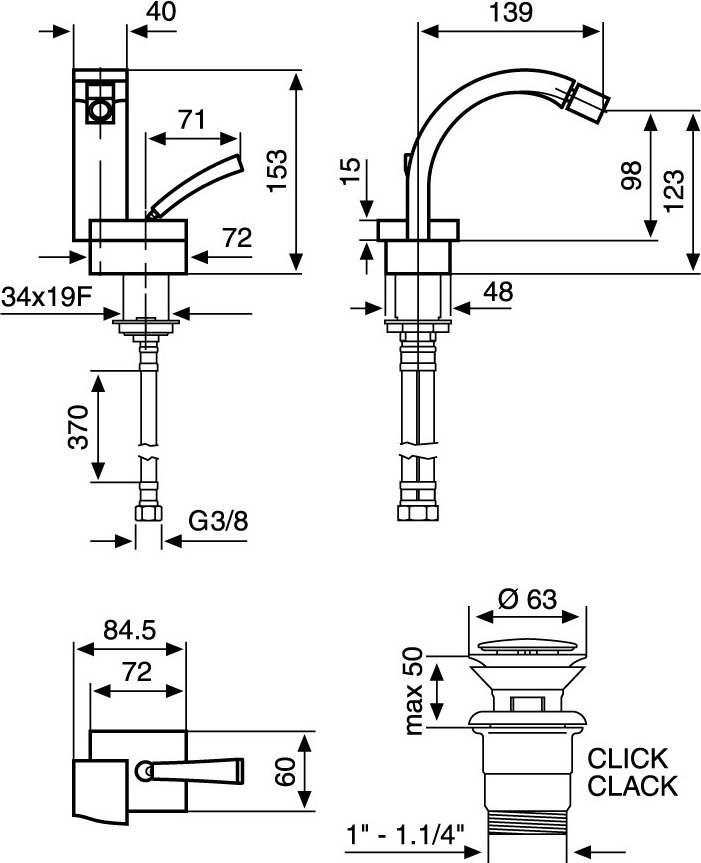 Смеситель для биде Emmevi Antef CR42004 с донным клапаном "click-clack", материал - латунь, цвет - хром.