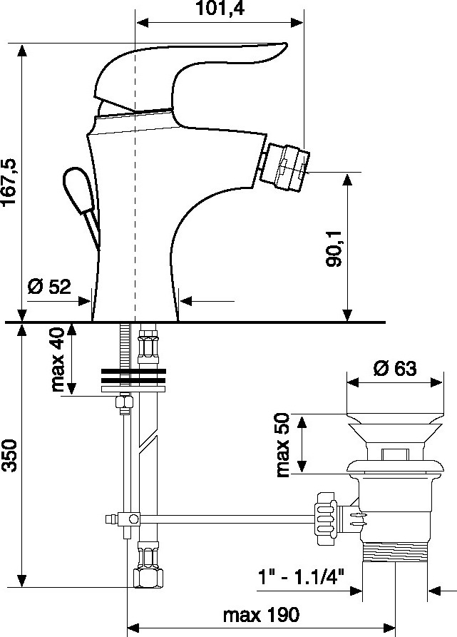 Смеситель для биде Emmevi Neco СR91004 с донным клапаном, материал - латунь, цвет - хром.