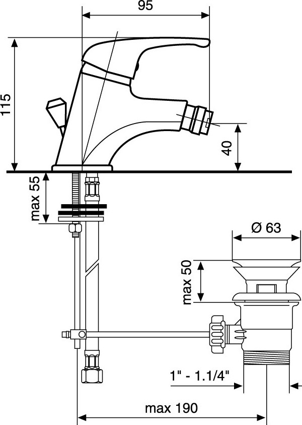 Смеситель для биде Emmevi Winny CR95004 с донным клапаном, материал - латунь, цвет - хром.