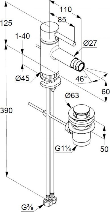 - однорычажный смеситель для биде DN 15