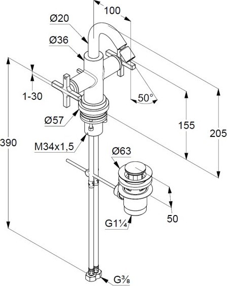 - донный клапан G 1 1/4 из металла