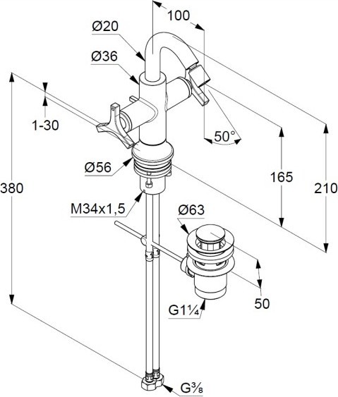 Смеситель для биде Kludi Nova Fonte Déco 203130539 с донным клапаном, материал - латунь, цвет - хром.