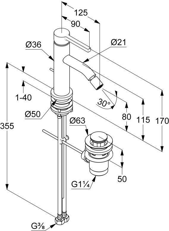 Смеситель для биде Kludi Nova Fonte Pura 202163915 с донным клапаном, материал - латунь, цвет - черный матовый.