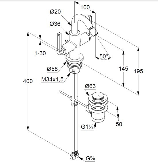 - донный клапан G 1 1/4 из металла