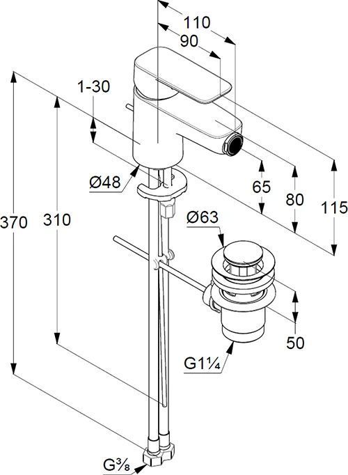 - однорычажный смеситель для биде DN 15