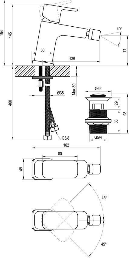 - соединительные шланги: гибкий 450 мм, диаметр G3/8