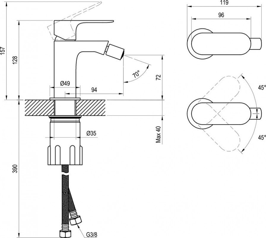 - Монтаж: на биде