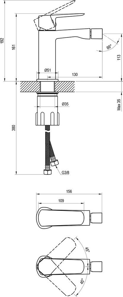 - соединительные шланги: гибкие 450 мм, диаметр G3/8