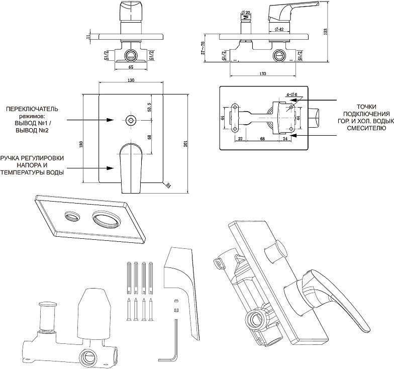 Смеситель для душа Aquanet Static AF330-51С со скрытой частью, материал латунь, цвет хром.