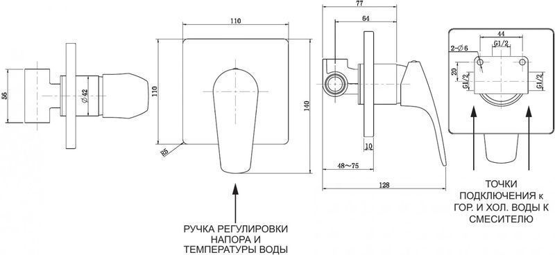 Смеситель для душа Aquanet Static Black со скрытой частью, материал латунь, цвет чёрный матовый.