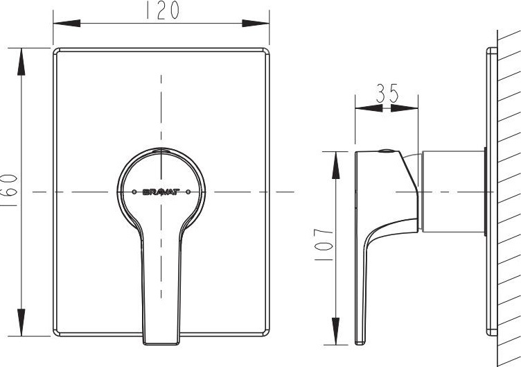 Смеситель для душа Bravat Prolate PB85179C-A-RUS, материал - латунь, цвет - хром. Скрытая часть D999CP-ENG приобретается отдельно.