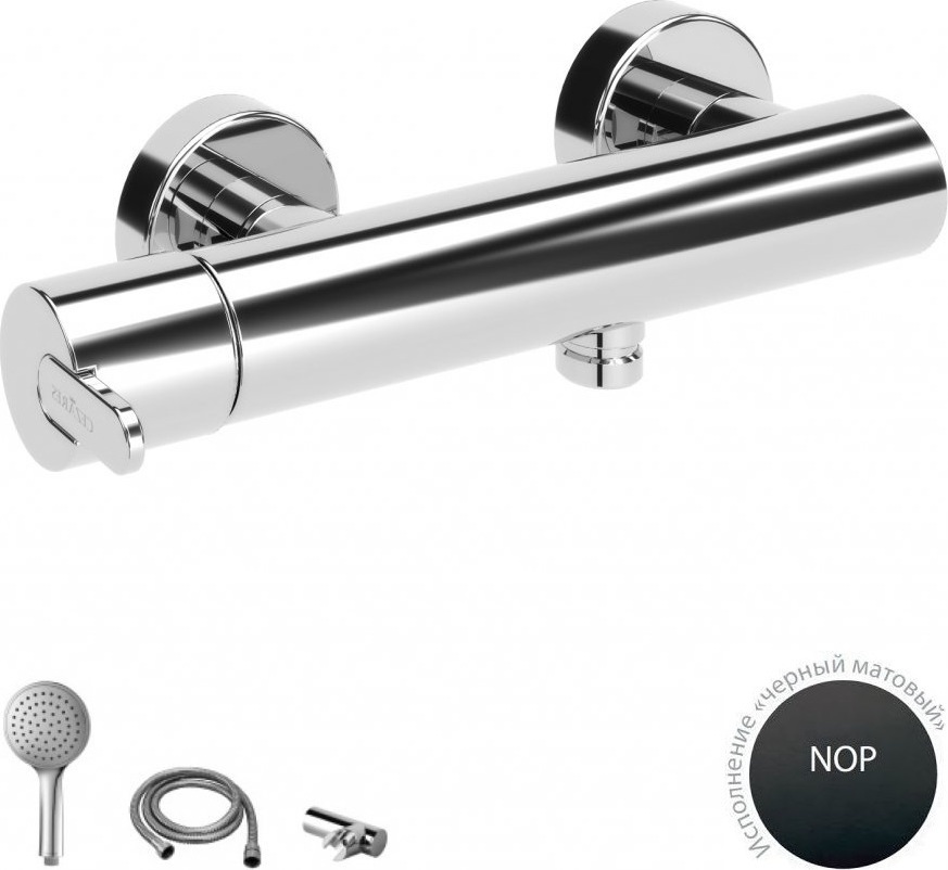 Смеситель для душа Cezares LEAF-D-NOP с душевым гарнитуром, материал - латунь, цвет - черный матовый.