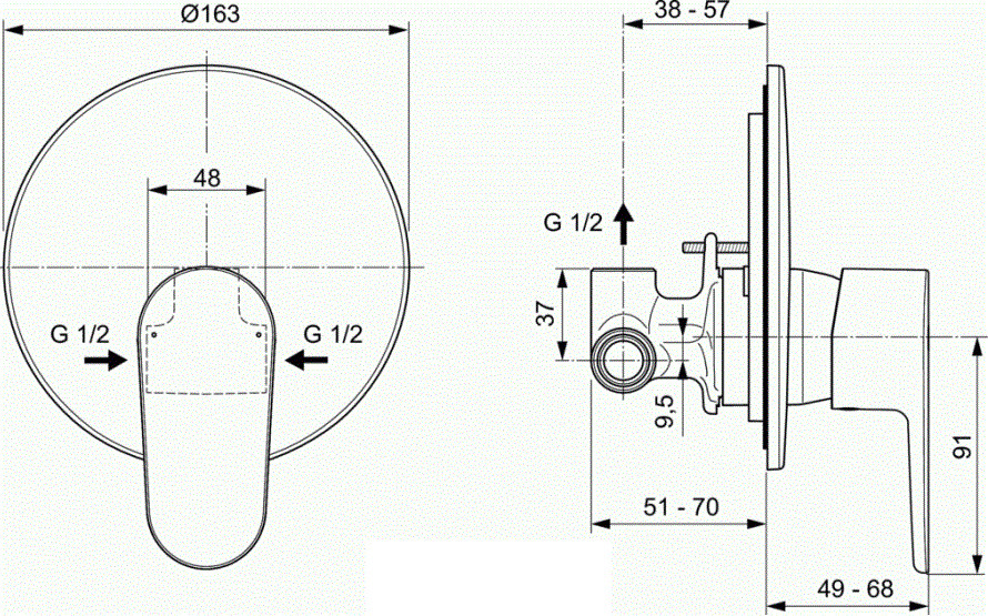 - встраиваемый смеситель для душа