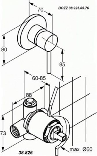 Смеситель для душа Kludi Bozz 389250576, материал - латунь, цвет - хром. Скрытая часть приобретается отдельно.