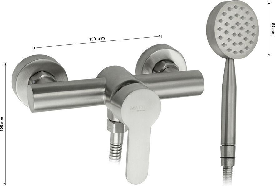 Смеситель для душа Magnus 9192 с душевым гарнитуром, материал нержавеющая сталь, цвет сатин.