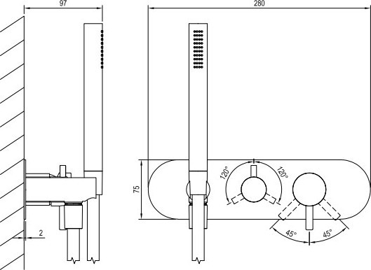 Смеситель для душа Ravak Espirit ES 068.20GB.O3+S X070319, с ручным душем, 3 потребителя, материал - латунь, цвет - графит матовый. Скрытая часть RB07D.50 (X070233) приобретается отдельно.