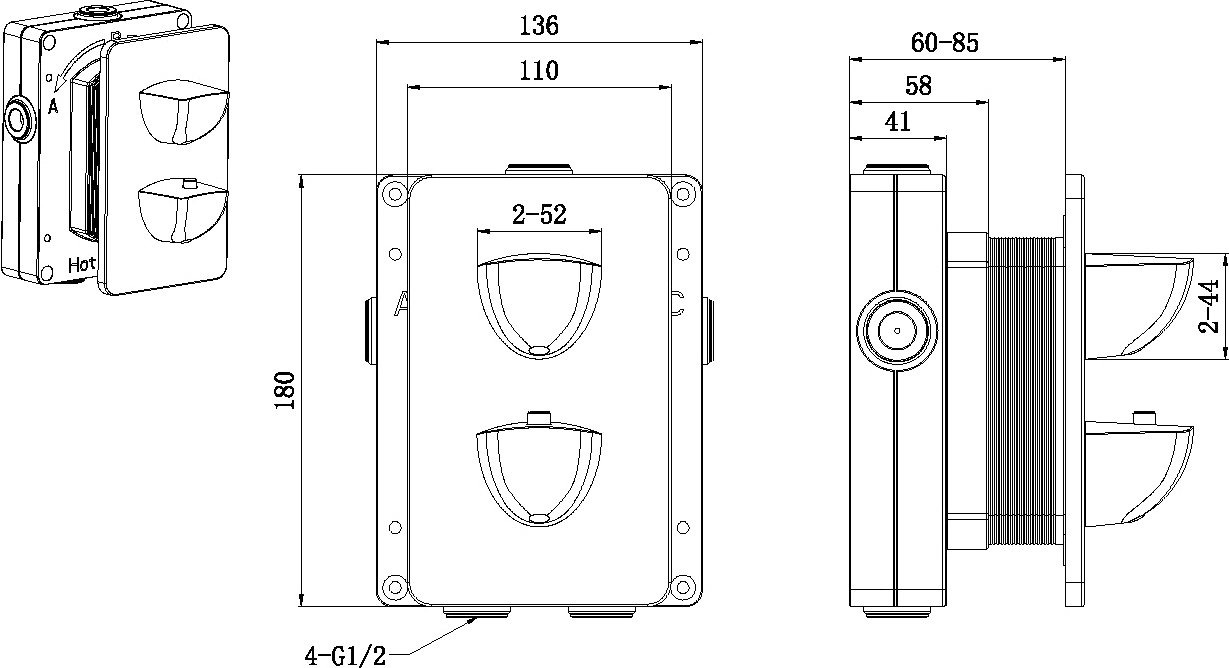 - Встраиваемый Термостатический смеситель на 1 потребитель воды, дополнительно приобретается оборудование на 1 потребитель (Пример: №1 верх.душ ИЛИ другой элемент на 1ин потребитель (излив или душевой набор с водорозеткой))