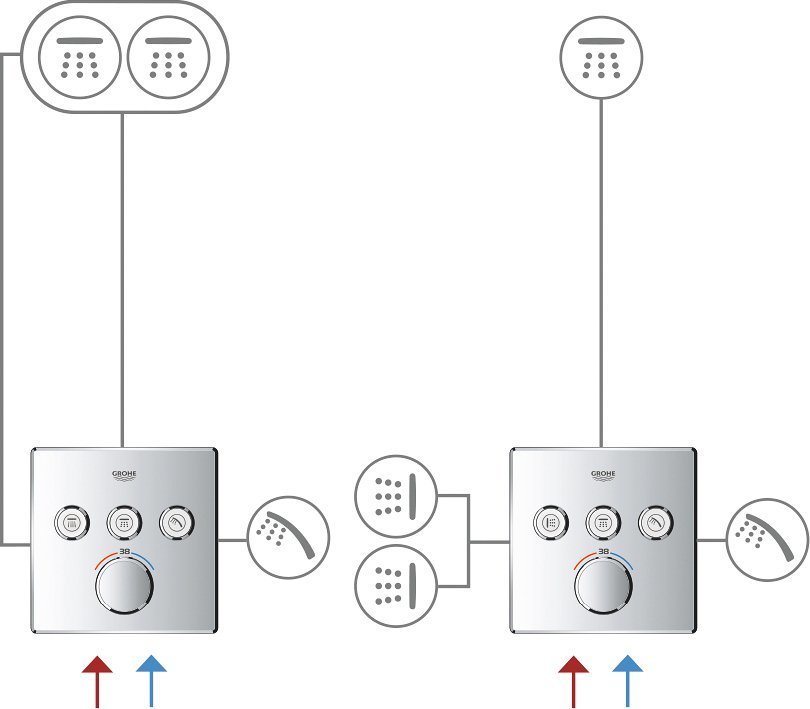 - GROHE SafeStop Plus опционно оганичитель температуры на 43°C / 46°C, включен