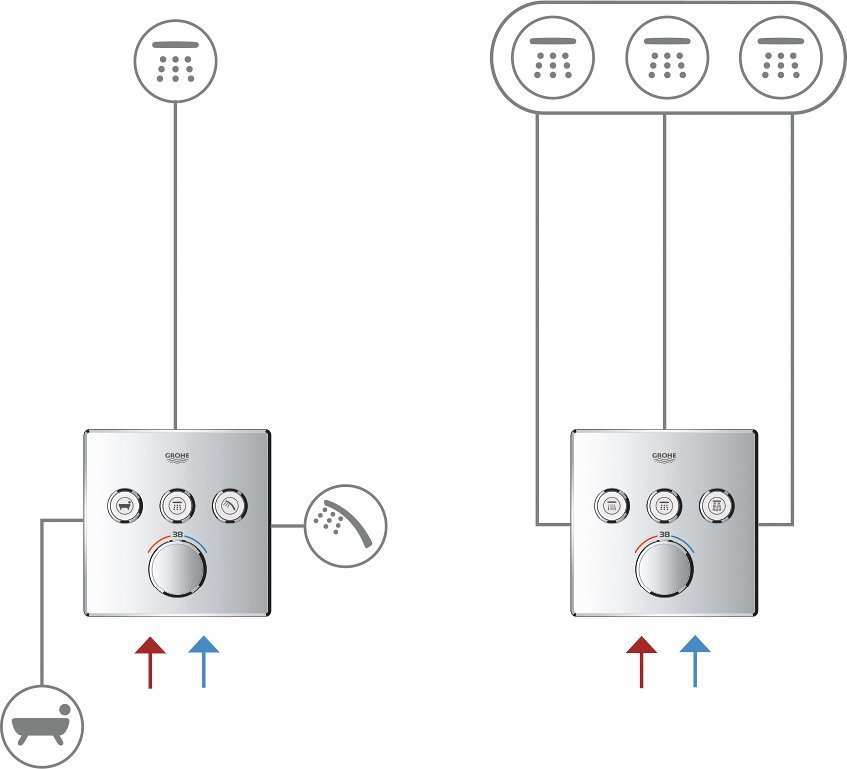 Смеситель для душа с термостатом Grohe Grohtherm SmartControl 29121000, материал - латунь, цвет - хром. Скрытая часть 35600000 приобретается отдельно.