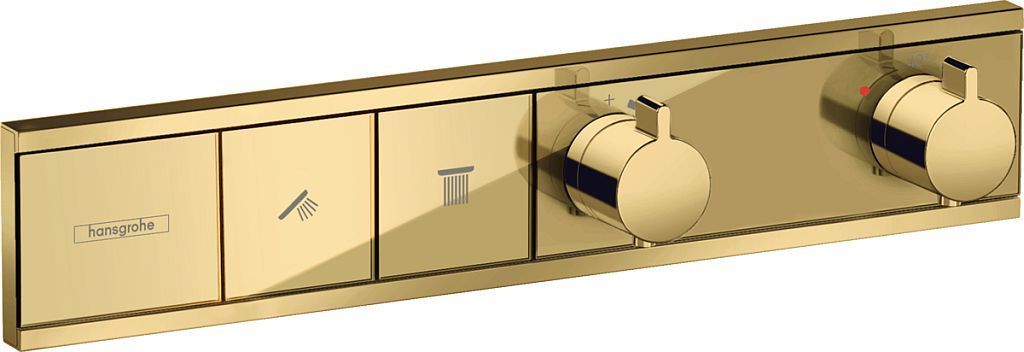 Смеситель для душа с термостатом Hansgrohe RainSelect 15380990, материал - латунь, цвет - полированное золото. Скрытая часть 15310180 приобретается отдельно.