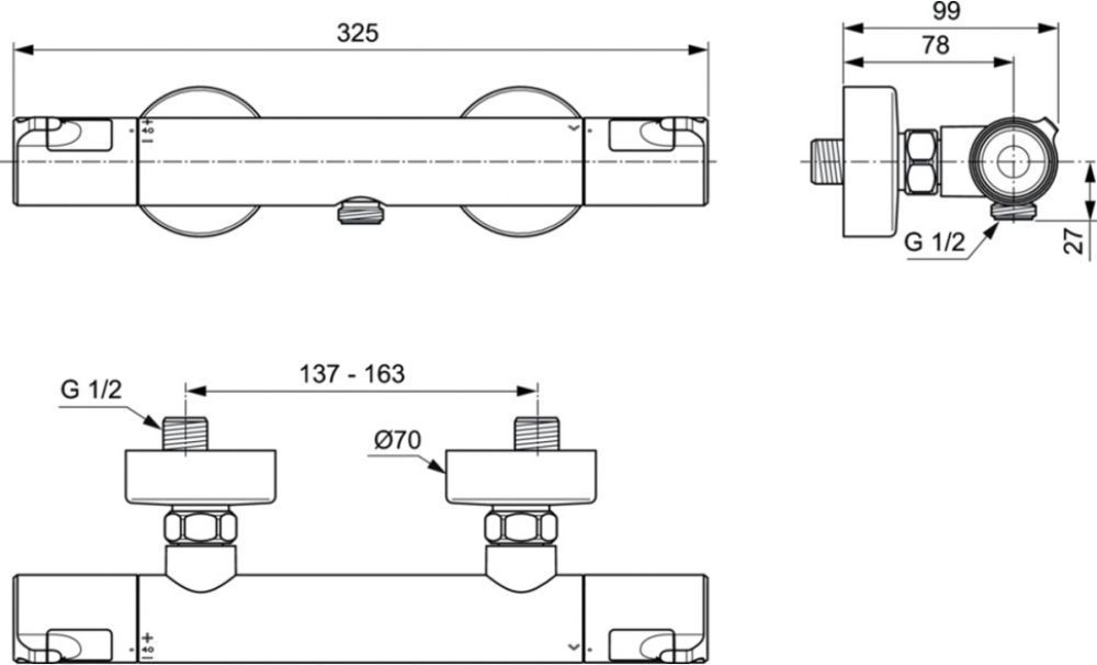 Смеситель для душа с термостатом Ideal Standard Ceratherm T50 A7214AA, материал латунь, цвет хром.