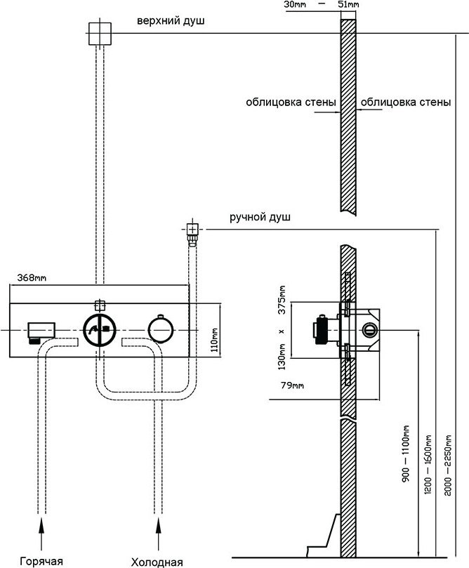 Смеситель для душа с термостатом Vincea VSCV-422TMB (со скрытой частью) матовый черный