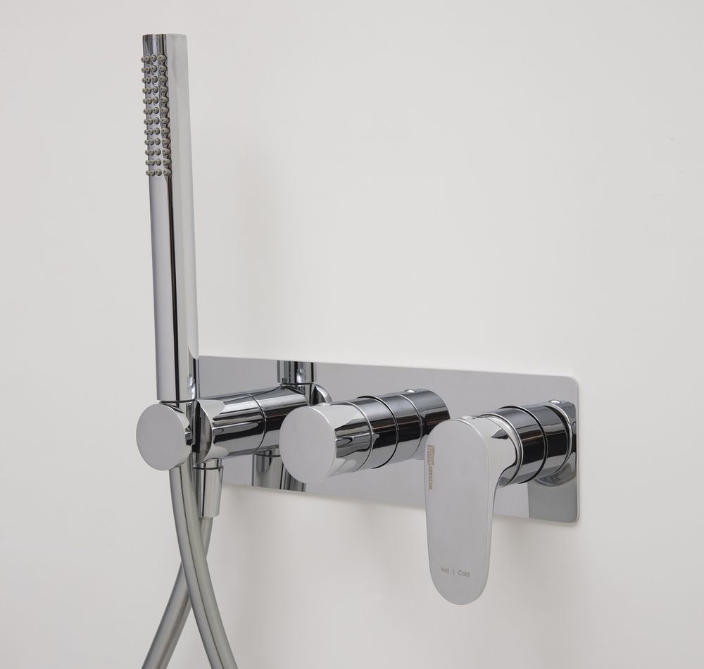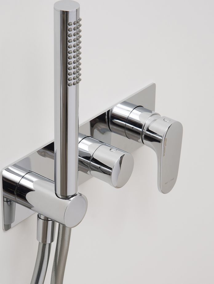 • Смеситель на 2 выхода. Лейка в комплекте. Дополнительно подключается еще к одному аксессуару на выбор: верхней душевой насадке или настенному изливу. В зависимости от ваших предпочтений.