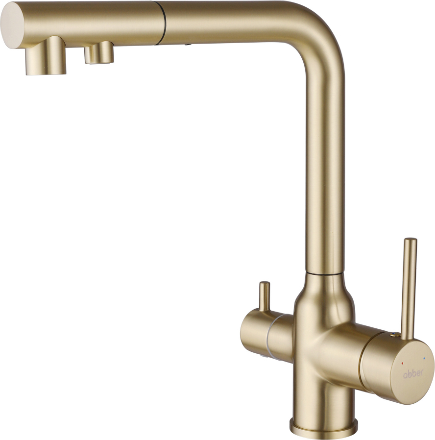Смеситель для кухни Abber Emotion AF8814G, с подключением фильтра и выдвижной лейкой, золото матовый