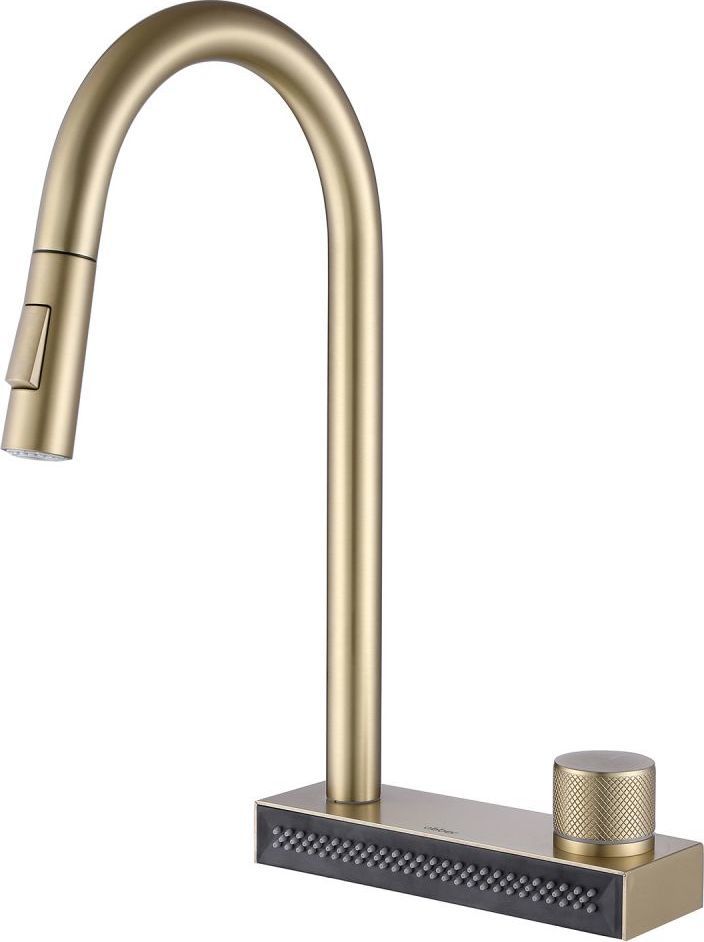 Смеситель для кухни Abber Wasser Kreis AF8114G с выдвижной лейкой, материал латунь, цвет золото матовое.