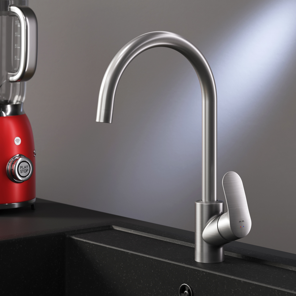 Впервые модный дизайнерский смеситель в доступном сегменте: ультрамодный стиль Dynamic Organic природные формы в сочетании с четкими линиями доведенными до совершенства человеком. Максимальный комфорт: плавное вращение поворотного излива в любом направлении обеспечивает непревзойденное удовольствие от использования и удобство в работе на кухне. Эксклюзивная разработка: специально спроектированный для АМ.РМ керамический картридж SoftMotion 35 мм обеспечивает оптимальную регулировку температуры а также позволяет выдерживать любые перепады давления. Разработан с учетом ваших потребностей и особенностей различных пространств. Высокий излив смесителя Like идеально подойдет для любой раковины поможет вам с легкостью справится с такими задачами как наполнение больших емкостей.