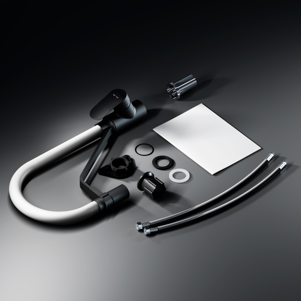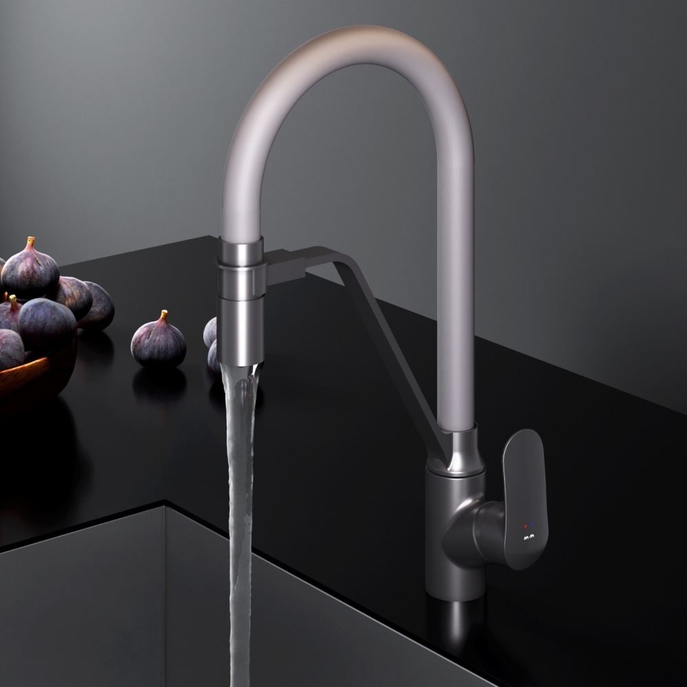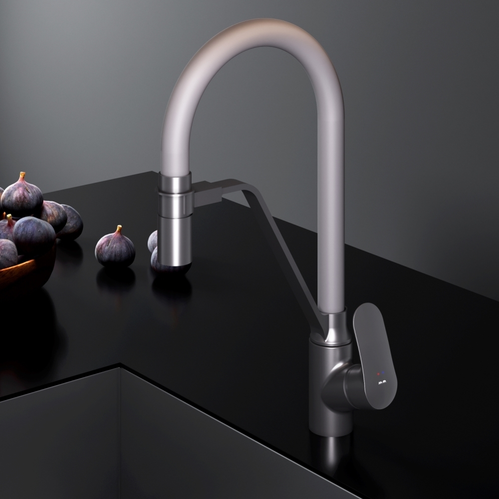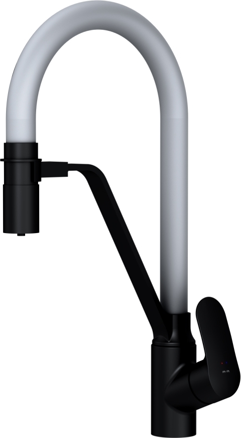 Смеситель для кухни AM.PM Like F8007825 для питьевой воды и гибким изливом, чёрный/серый