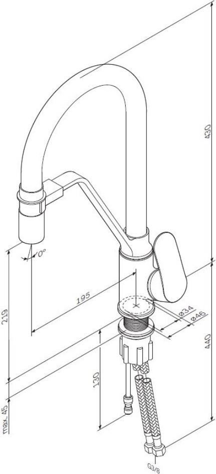 Характеристики смеситель для кухни,смеситель для кухни с подключением фильтра,смеситель для кухни с гибким изливом AM.PM (F8007825)