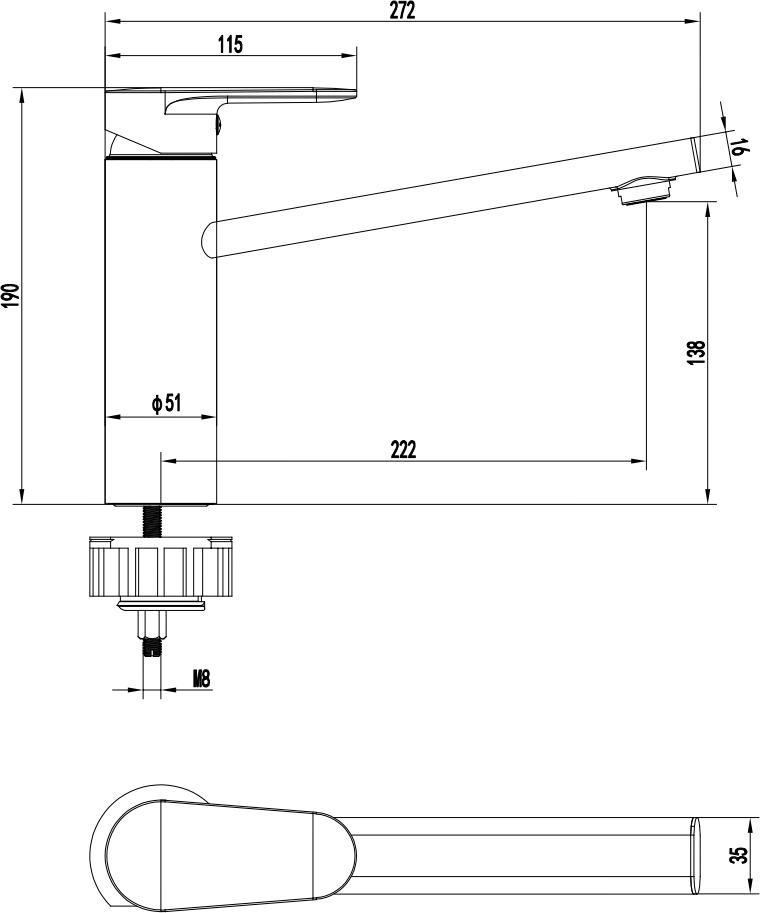 - однорычажная система регулировки силы струи и температуры воды