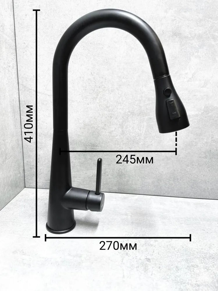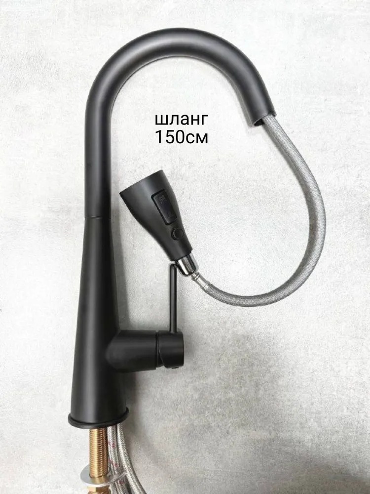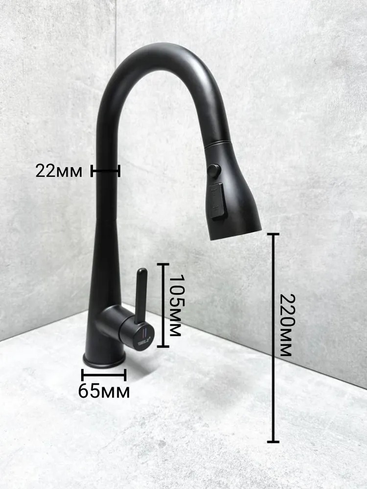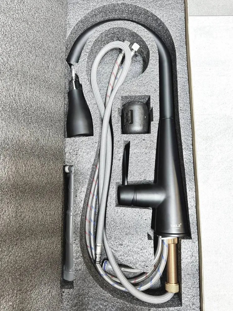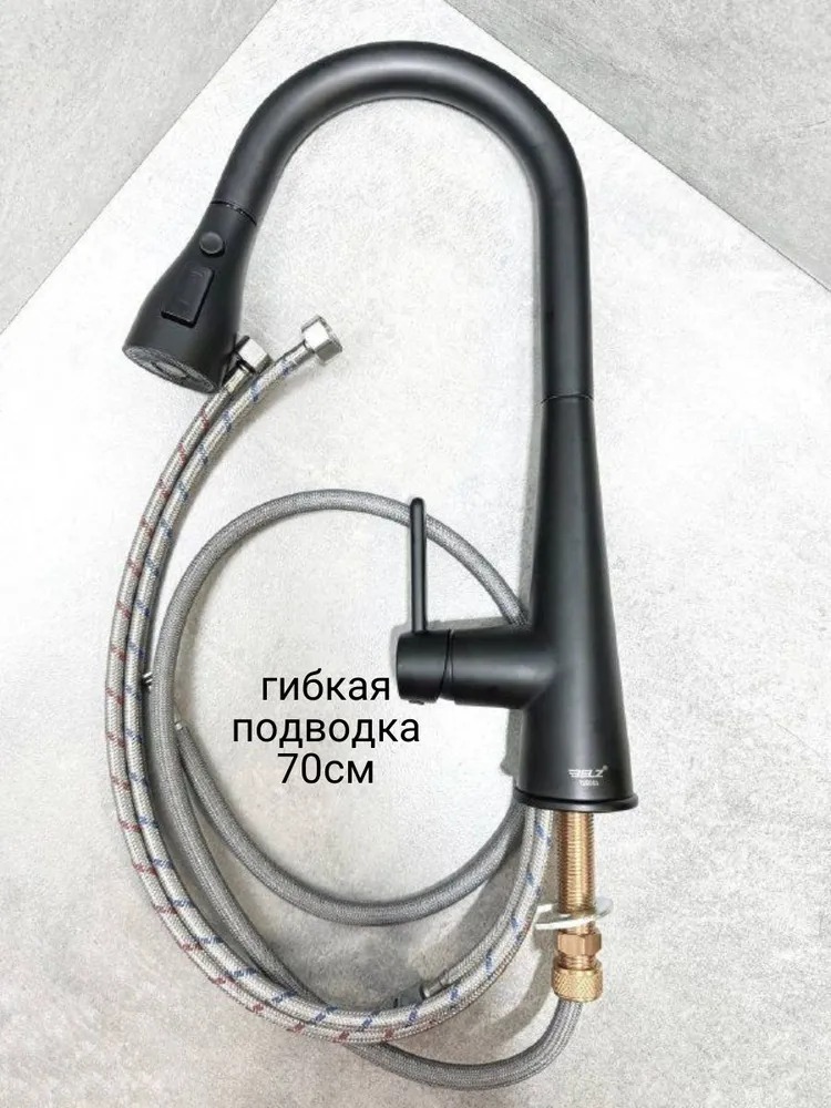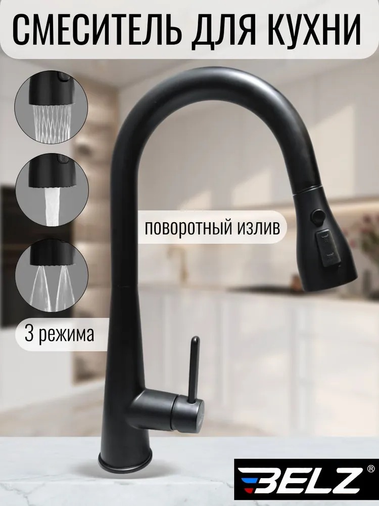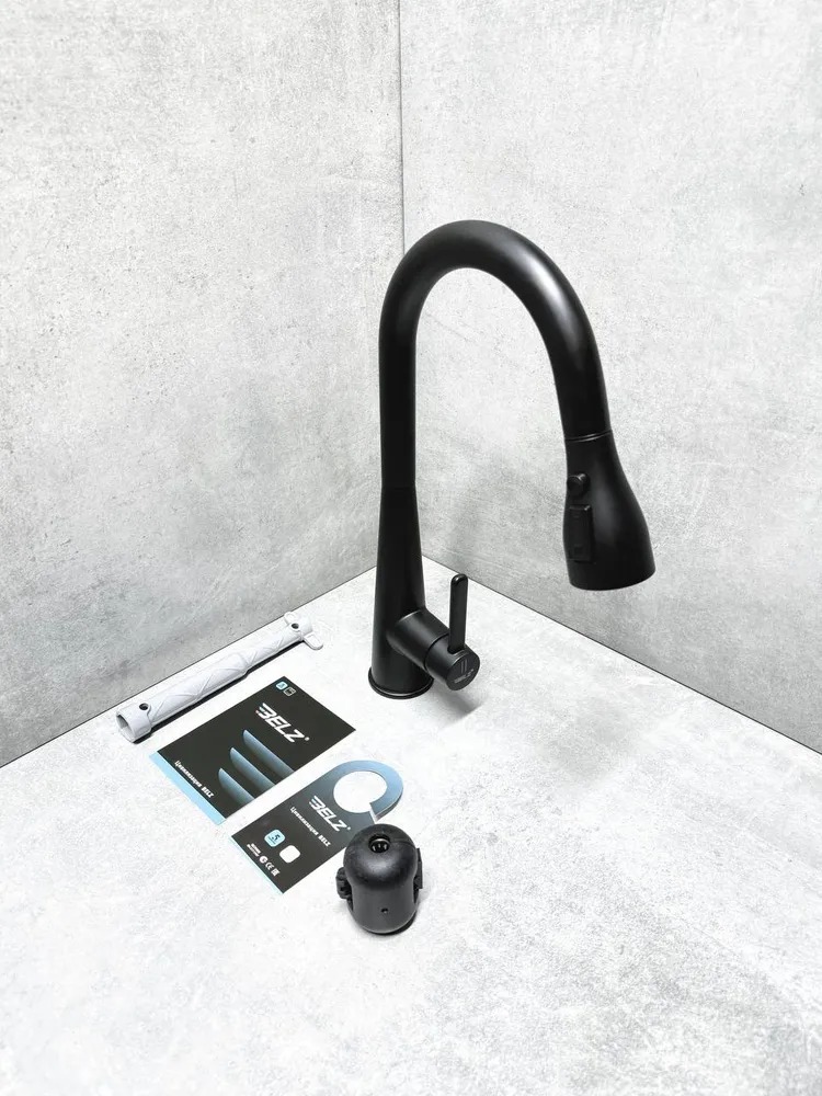 Смеситель для кухни BELZ B74816-7 с выдвижным, поворотным изливом, материал - нержавеющая сталь, цвет - черный.