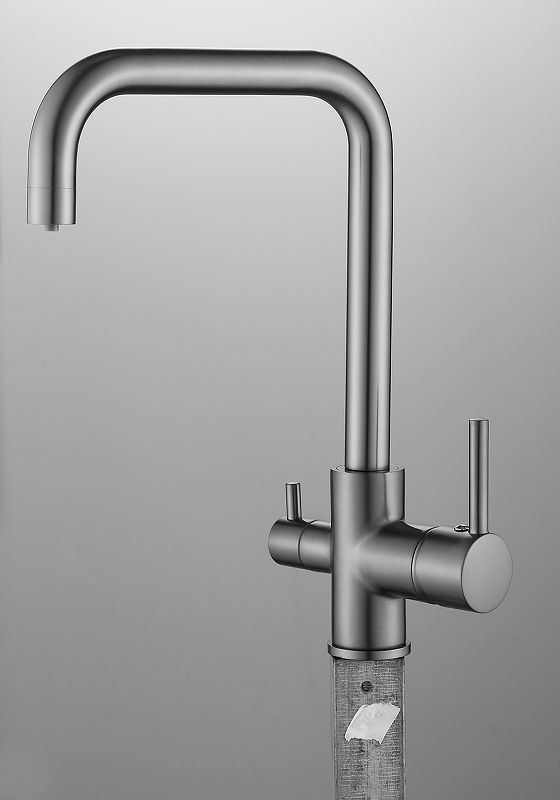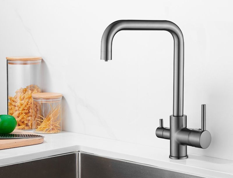 Смеситель для кухни Belz B76802-3 с подключением фильтра и поворотным изливом, материал латунь, цвет графит.