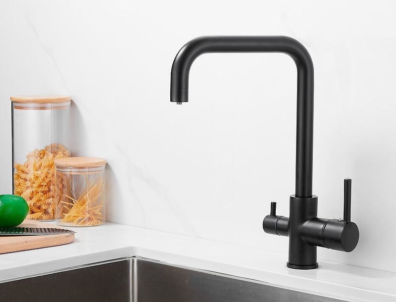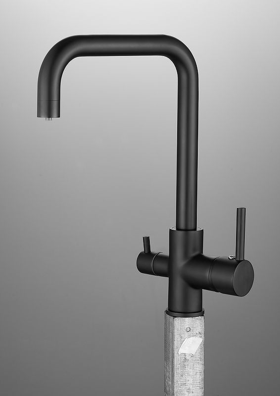 Смеситель для кухни Belz B76802-7 с подключением фильтра и поворотным изливом, материал латунь, цвет чёрный.