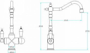 Характеристики смеситель для кухни,смеситель для кухни с подключением фильтра Boheme (113-CRST)