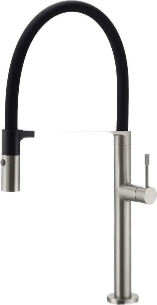 Смеситель для кухни Boheme Uno с гибким и поворотным изливом, материал латунь/силикон, цвет nickel brush