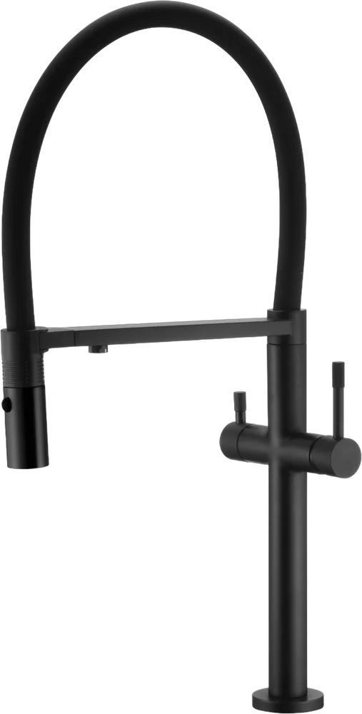 Смеситель для кухни Boheme Uno с гибким и поворотным изливом, материал латунь/силикон, цвет чёрный матовый