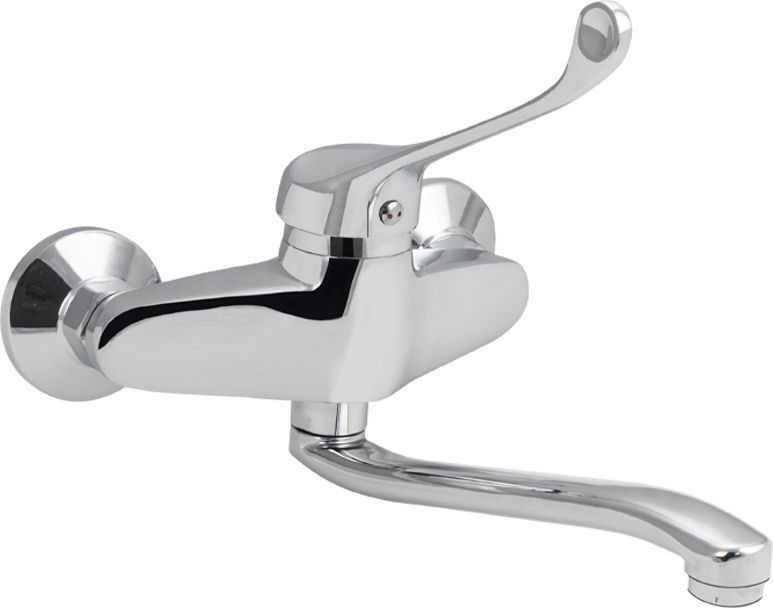 - Локтевой механизм управления: Удобная длинная ручка для легкого переключения воды.