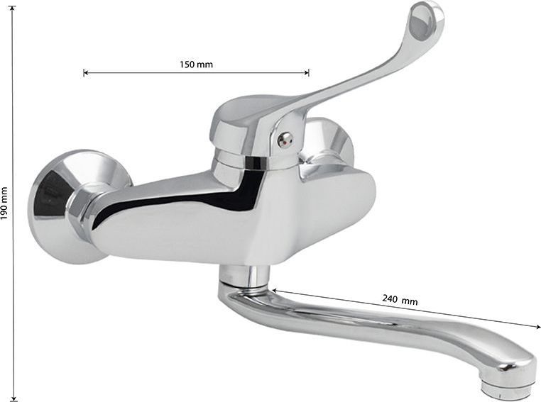 - Габаритные размеры: Ширина 150 мм, высота 190 мм, длина излива 240 мм.