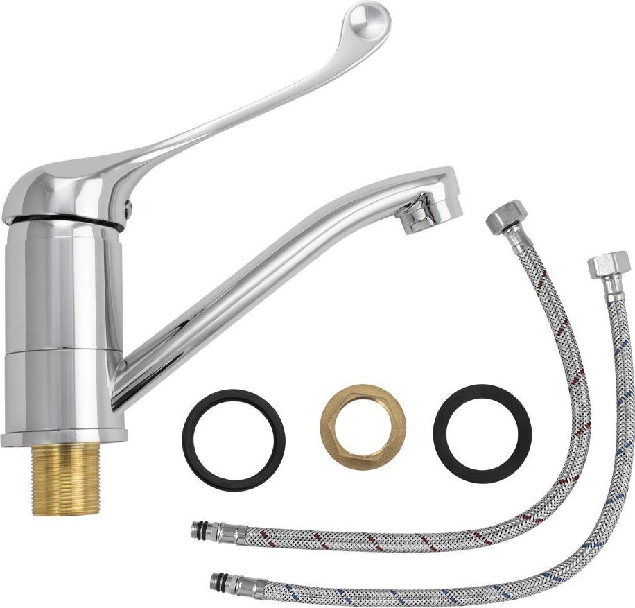 - Локтевой механизм управления: Удобная длинная ручка для легкого переключения воды.