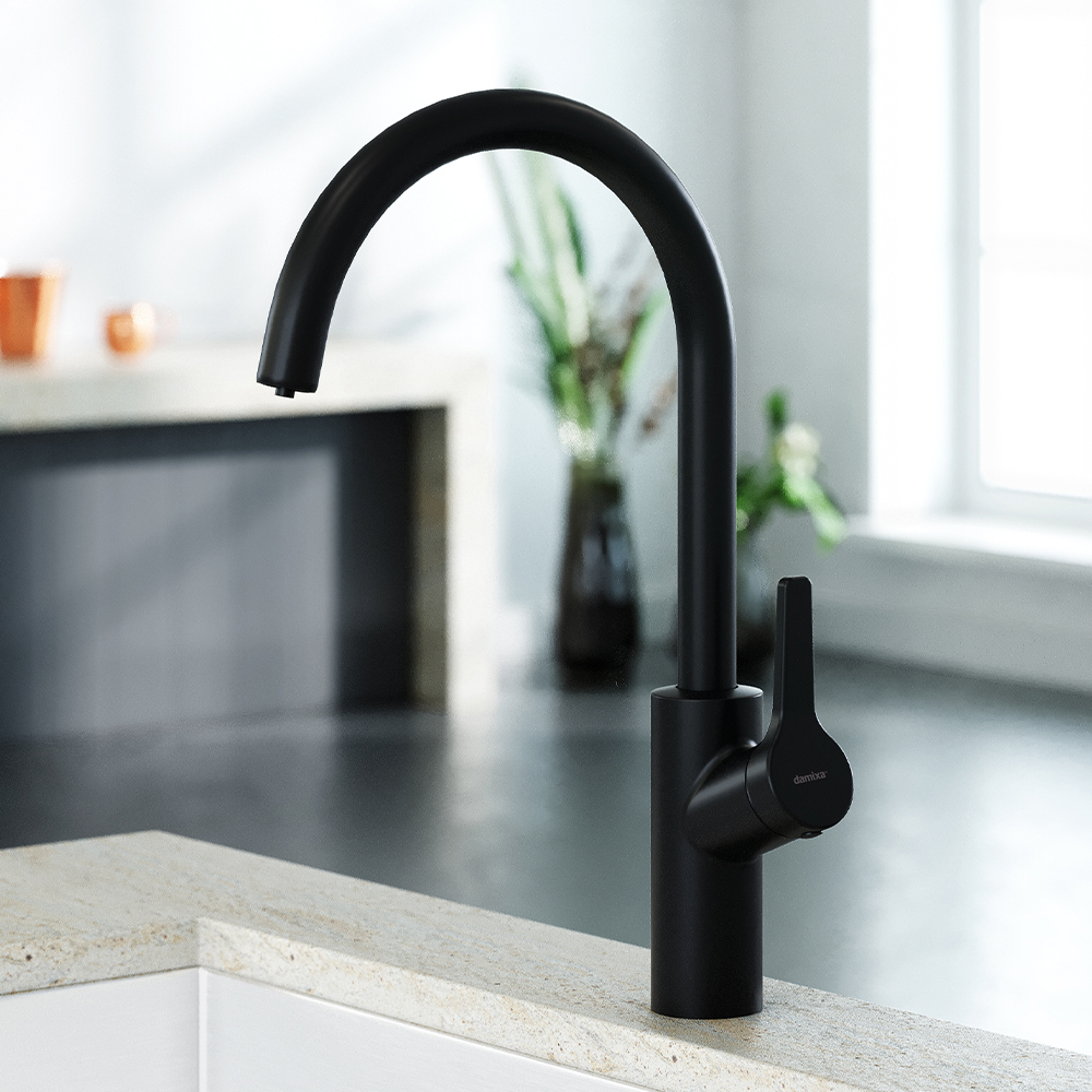 Смеситель для кухни Damixa Eclipce 310721300 с подключением фильтра, материал латунь, цвет чёрный.